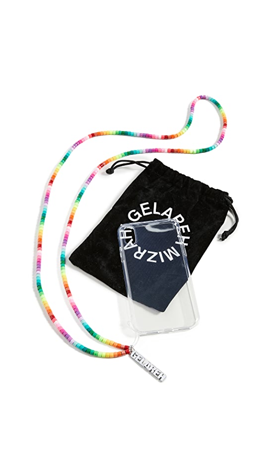 The Gelareh Mizrahi rainbow crossbody enamel phone strap is the ultimate fashion accessory to protect your precious gadget and carry it hands-free.