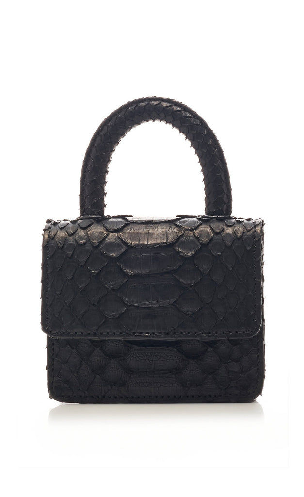 The iconic Gelareh Mizrahi micro mini top handle in black. As seen on Kylie Jenner over and over and over agin! A compact style for only the essentials, this Gelareh Mizrahi structured bag is crafted from luxe python leather. Carry it by the top handle for a dinner date, or wear it crossbody for a night of dancing.